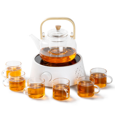 常生源 煮茶器家用电陶炉煮茶壶耐热过滤玻璃提梁泡茶壶烧水壶茶杯功夫茶具套装 白韵电陶炉套组