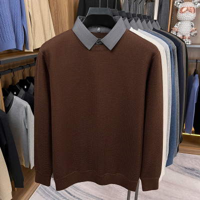 加厚毛衣男士假两件2025秋冬季新款时尚衬衫领长袖针织衫男