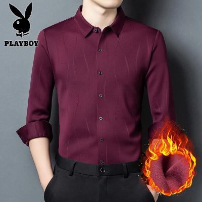 花花公子新款高品质加绒商务印花衬衫