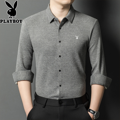 花花公子2024秋冬新款长袖衬衫男加厚中年爸爸装商务休闲保暖寸衣