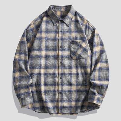 男装潮牌美式慵懒风格纹长袖衬衫春秋季新款翻领日常百搭高街衬衣