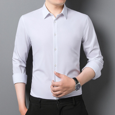 春季长袖衬衫男修身弹力免烫竹纤维工装衬衣男士纯色百搭商务寸衫