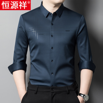 恒源祥免烫衬衫男长袖春秋薄款商务休闲2025新款中年爸爸弹力衬衣