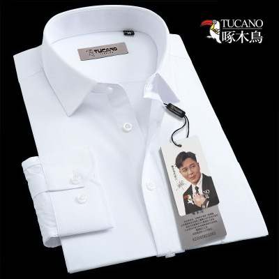 啄木鸟白衬衫男士长袖商务休闲免烫中青年短袖职业上班工装棉衬衣
