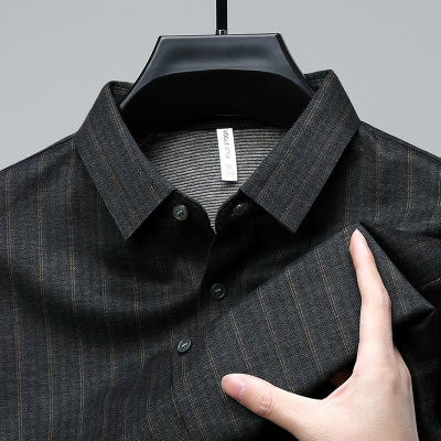 新款男士春秋高品质商务休闲男士衬衫条纹弹力上衣