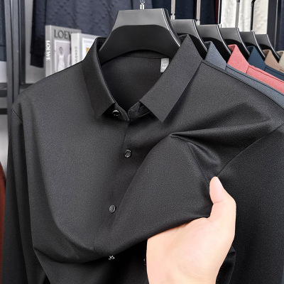 春秋新款男士长袖衬衫商务休闲纯色轻奢时尚翻领长袖衬衫