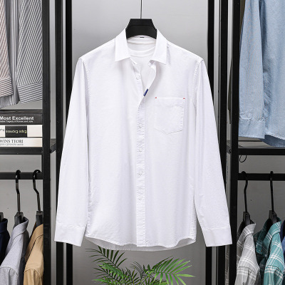 100%纯棉男士衬衫水洗津纺秋季新款真口袋翻领长袖衬衣男