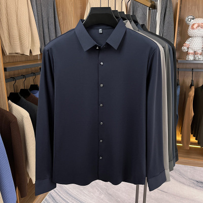 羊毛莫代尔无痕长袖衬衫男秋季新款商务翻领纯色男士衬衣