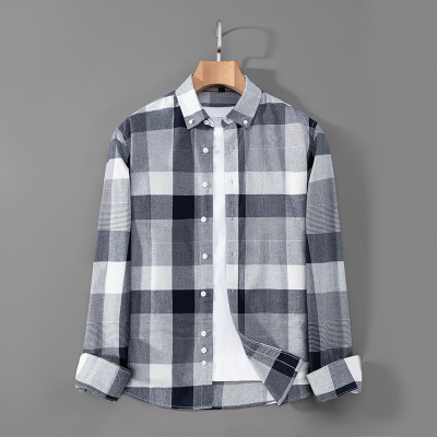 春秋新款格子全棉长袖衬衫男士修身工装衬衣休闲潮流寸衫