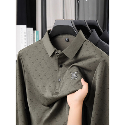 长袖休闲T恤高级感中年男士休闲商务polo衫衬衫领打底衫