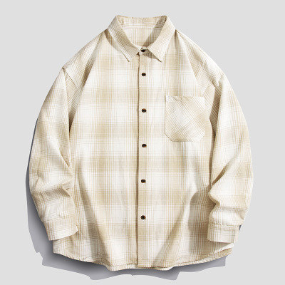 衬衫男春秋季新款格子衬衫男士长袖潮牌内搭百搭宽松翻领衬衣外套