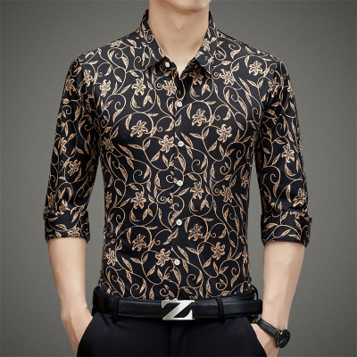 秋季新款男士印花衬衫免烫衬衣时尚休闲长袖