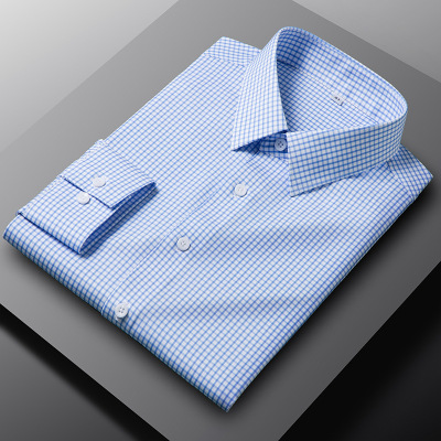 秋季新款男士衬衫条纹免烫长袖格子休闲衬衣