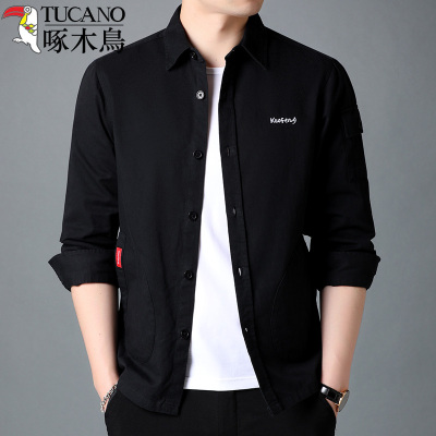 啄木鸟衬衫男士纯棉宽松长袖衬衫春季工装寸衫中青年休闲商务外套