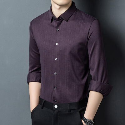 中青年男士商务休闲长袖条纹衬衫秋季新款简约时尚男装衬衣
