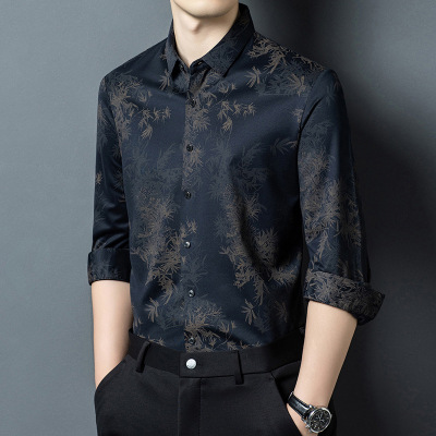 春秋新款枫叶印花男士长袖衬衫商务休闲时尚百搭衬衣