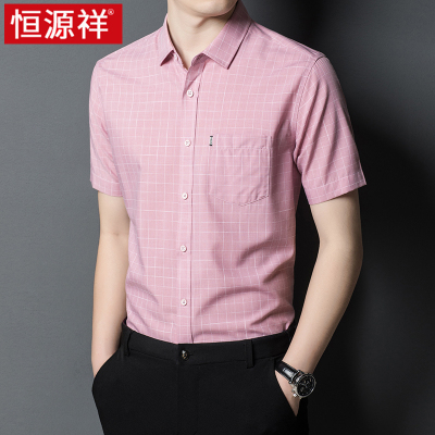 恒源祥短袖衬衫男格子夏季薄款带口袋寸衣半袖中袖五分袖男士衬衫