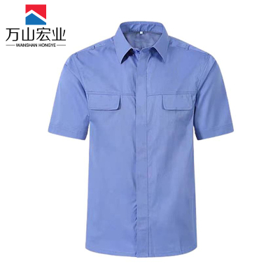 万山宏业 蓝色衬衫短袖衬衣工作服 CS01/件