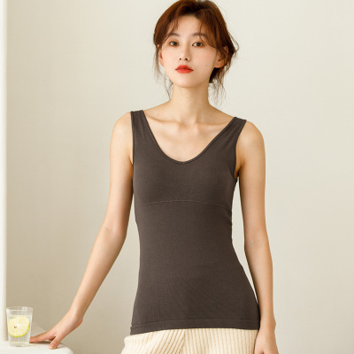 秋冬季V领保暖背心女士带胸垫内搭外穿修身显瘦无缝美体保暖马甲