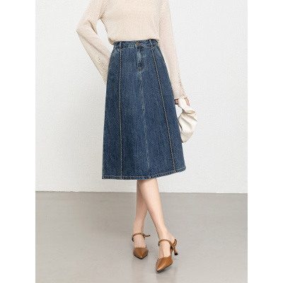 20266年春季新款复古撞色刺绣线显瘦伞裙A字牛仔半身裙女