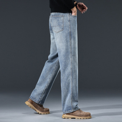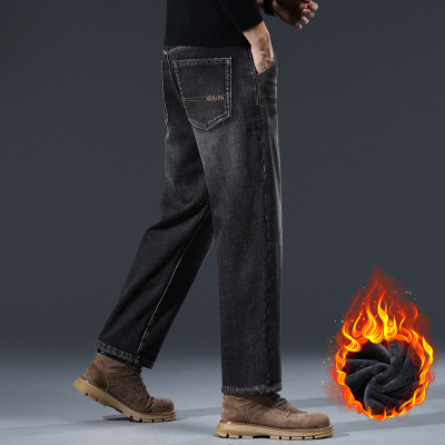 宽松男士高端休闲长裤加绒牛仔裤男士新款直筒裤子商务爸爸裤