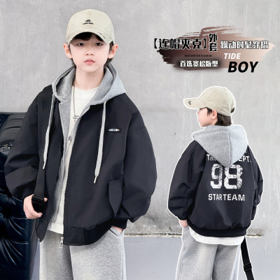 男童春装假两件外套2026新款大儿童装上衣春秋款痞帅风男孩风衣潮