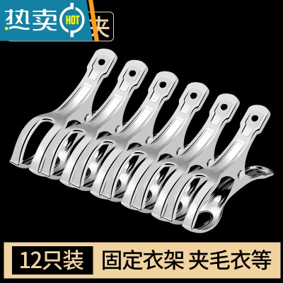 敬平夹子晾衣夹不锈钢夹子晾衣服晒被子大号防风衣架家用固定器 S5中号开口夹8.5cm(12只装) 适合固定衣架
