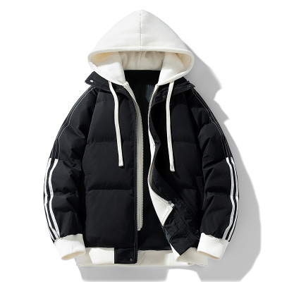 秋冬新款男士棉衣假两件日系潮牌连帽外套宽松青少年棉服加厚棉袄