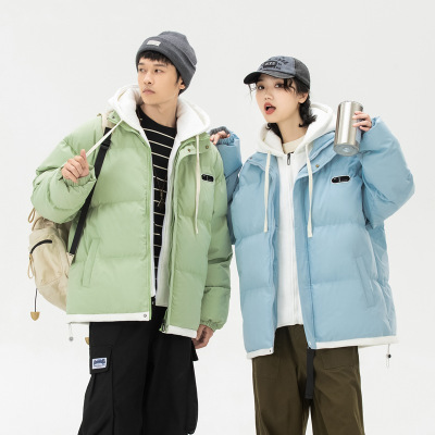 假两件棉衣男士冬季加厚韩版潮牌纯色连帽棉服宽松情侣装棉袄外套