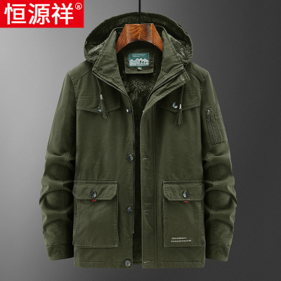 恒源祥棉衣男冬季棉袄加绒加厚冲锋衣外套男纯棉工装连帽男士棉服