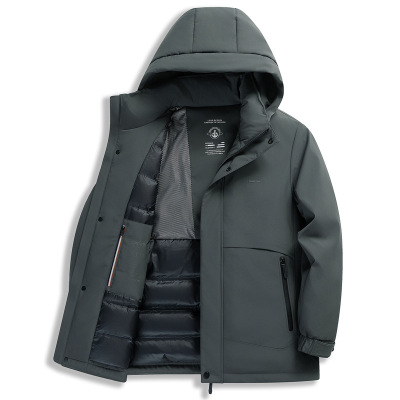 新国标90白鸭绒羽绒服秋冬新款脱卸帽中长款男士防寒保暖羽绒外套