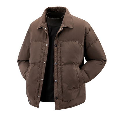 羽绒服男士宽松秋冬季新款白鸭绒保暖翻领潮流单排扣纯色男装外套