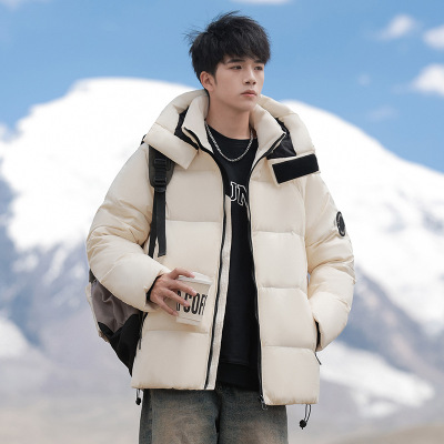 男装冬季90绒子羽绒服青少年纯色休闲时尚连帽保暖男士加厚面包服