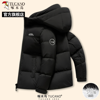 啄木鸟冬季新款男士加厚连帽羽绒服中年保暖爸爸装休闲外套上衣C