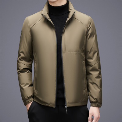 冬季白鸭绒连帽夹克羽绒服中年商务拉链夹克款羽绒服商务轻奢外套