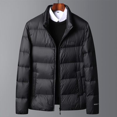 冬季白鸭绒连帽夹克羽绒服中年商务拉链夹克款羽绒服商务轻奢外套