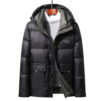 简欧冬季新款白鸭绒面包羽绒服男加厚潮流连帽羽绒服中长防寒外套