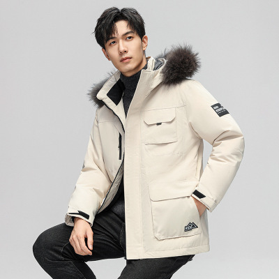 冬季工装羽绒服潮牌大毛领连帽户外休闲加厚保暖青年羽绒服外套男