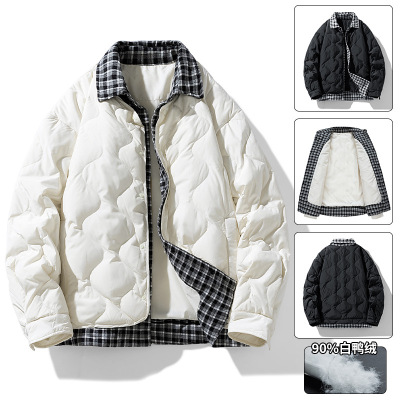 男装秋冬季新款羽绒服男翻领情侣款羽绒服假两件时尚百搭外套