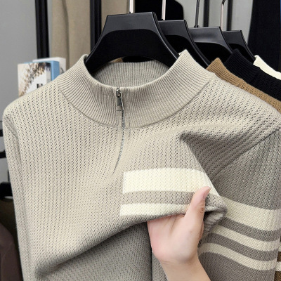 时尚半高领拉链针织毛衣男秋冬季新款加厚提花男士针织衫