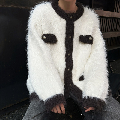 男装新款水貂绒毛衣男士外套小香风撞色针织开衫情侣潮牌时尚毛衣