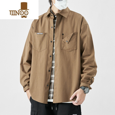 YANXU美式复古衬衫男长袖宽松大码秋季日系休闲工装翻领衬衣外套潮