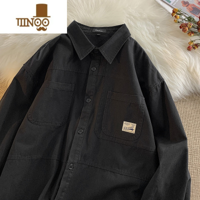 YANXU工装衬衫男长袖日系复古休闲衬衣男装日系宽松潮牌外套男上衣