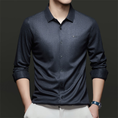 年新款秋季长袖男士时尚休闲商务衬衫男免烫竖条纹衬衫