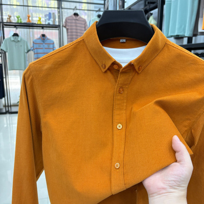 秋季新款纯棉质男士纯色长袖衬衫纯色基础百搭款长袖衬衫
