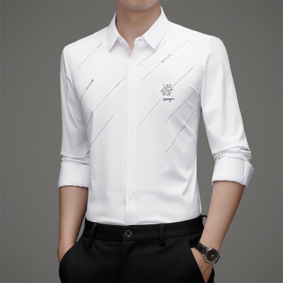 长袖衬衫男士新款秋季商务休闲印花衬衣男士时尚上衣