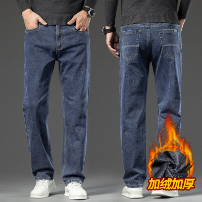 秋冬季加绒加厚牛仔裤男士宽松直筒新款弹力耐磨劳保休闲长裤