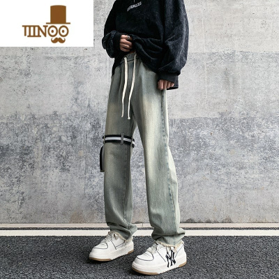 YANXUE023秋装男士宽松牛仔裤380g复古做旧水洗百搭直筒潮牌长裤子