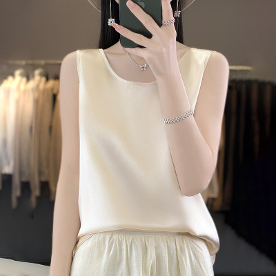 2025年春夏新款丝滑缎面圆领吊带背心女西装内搭纯色外穿小背心