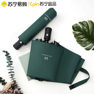 苏宁宜品全自动UV雨伞黑胶遮阳伞三折伞折叠伞晴雨两用防晒伞商务伞